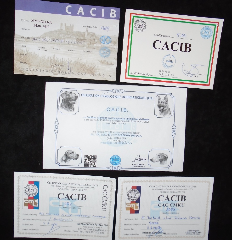 5 x   CACIB     2x  CZ,    1 x  PL,    1 x  HU,    1 x   SK