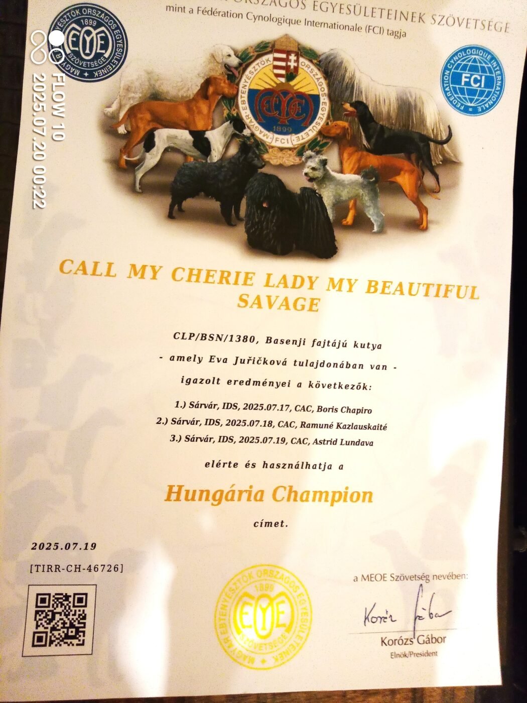 1, ŠARVÁR , IDS , 2025.07.17, Intermediate , Excellent 1 , CAC roz. Boris Chapiro