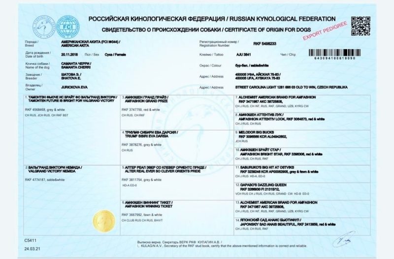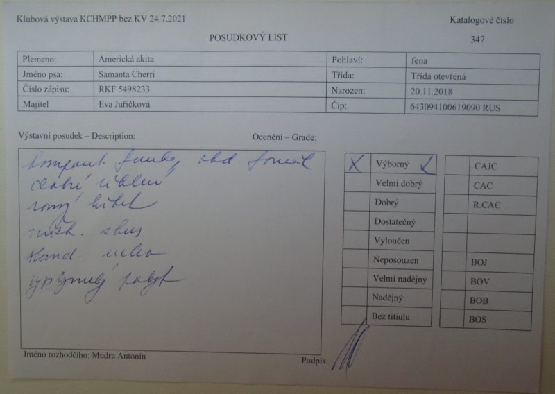 narozena : 20.11.2018 tetování :AJU 3841 čip: 643094100619090 RUS zápis do PK ČMKU dne 19.08.2021