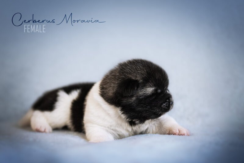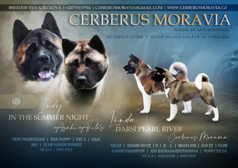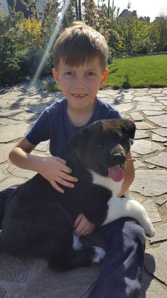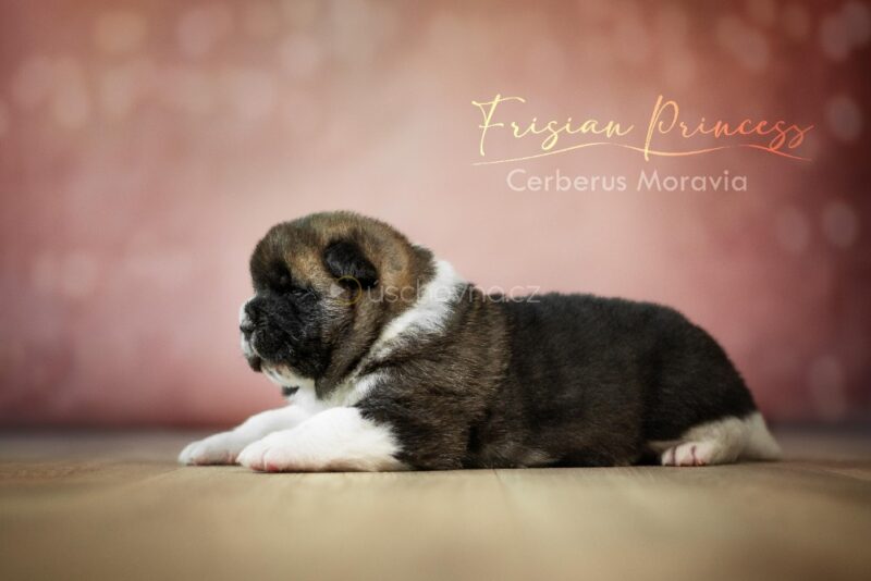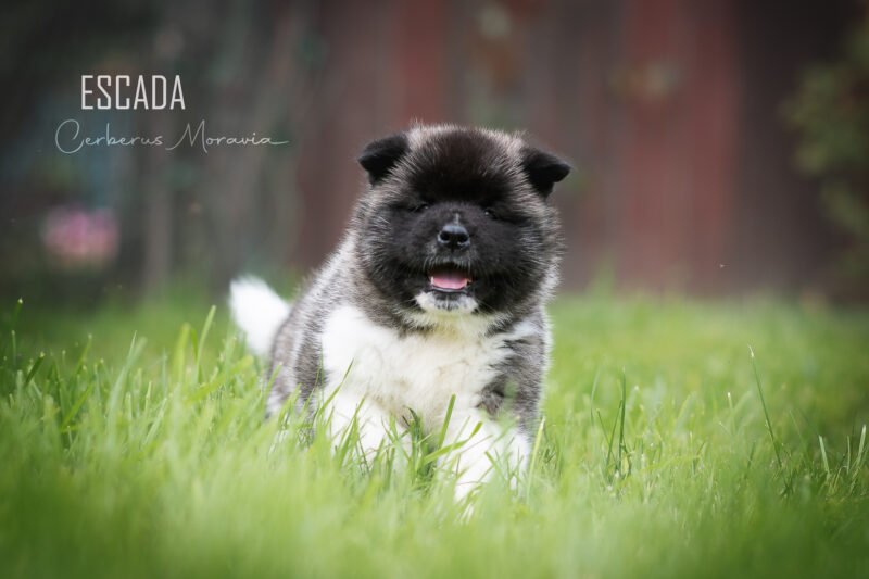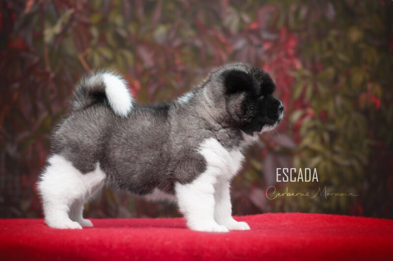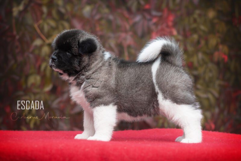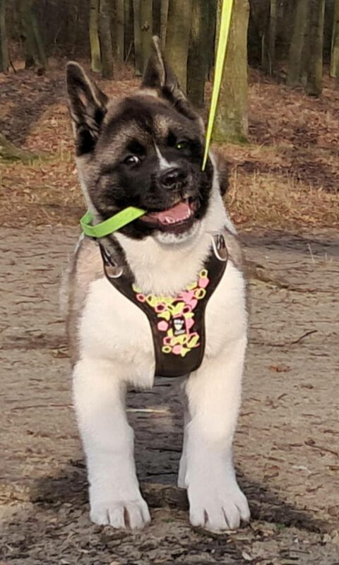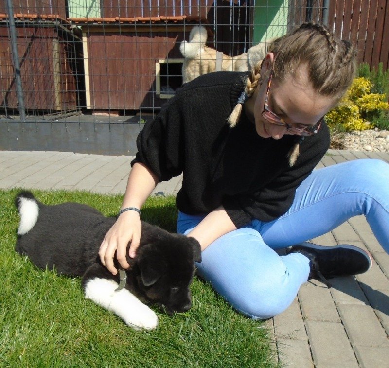 Engie je silná fenka v 8 týdnech váží 9,50 kg. Má správný nůžkový skus a roste a vyvíjí se v souladu se standartem americké akity. Temperamentní, nebojácná a velmi milá. Je vhodná jako společník do rodiny tak na výstavy i další chov. Méně zkušenému zájemci zajistím jak konzultace, tak i pomoc při řešení různých situací. V případě dotazů volejte +420 730 137 924